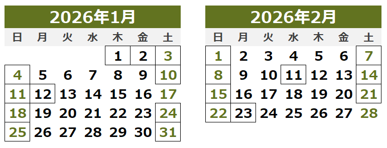 ※□は休業日となります