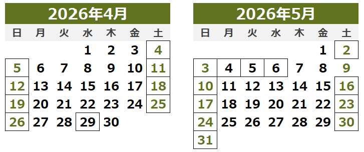 4・5月営業日カレンダー